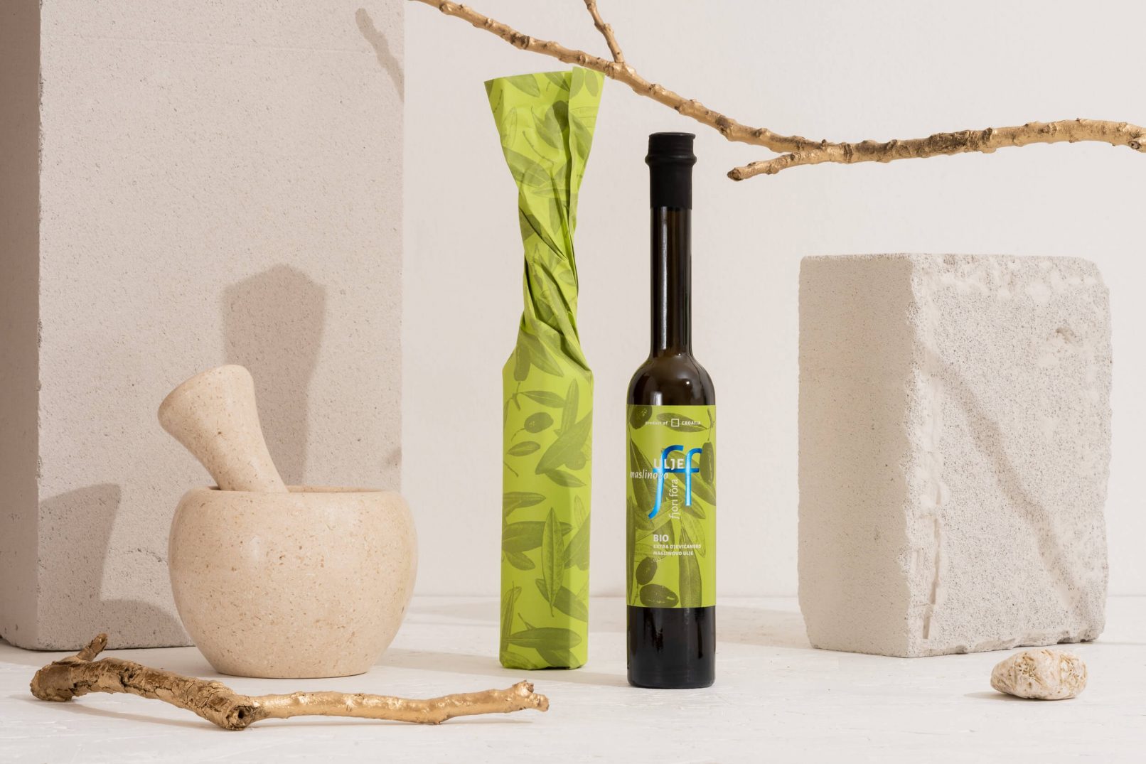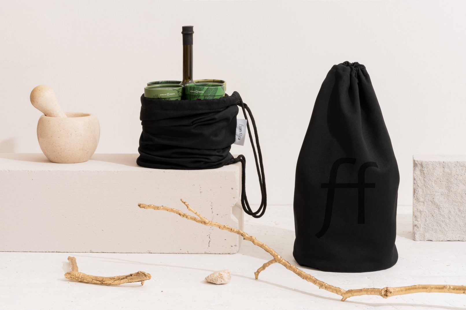 In addition to Fjori fôra organic herbs, the Ćurin family also produces a small amount of organic olive oil. It is available through the segment of occasional or business gifts. Oil and herbs can be gifted as separate products or a set in a quality textile “ff” bag. Thanks to the specially designed inner carrier, the bag’s contents are modular and allow different gift combinations.
