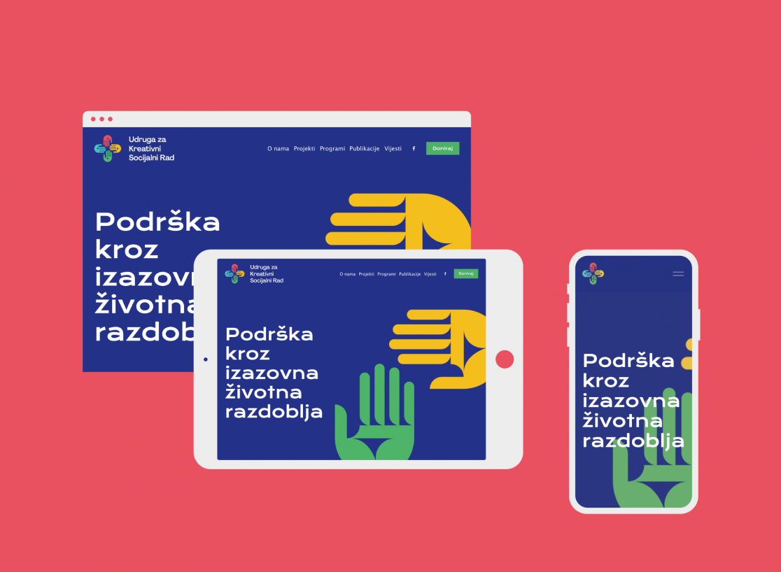 The redesign of the Creative Social Work Association visual identity kept the primary motive – hands. But now, they face each other and form a cross, communicating support and assistance in crises, which is the basis of the Association’s actions.