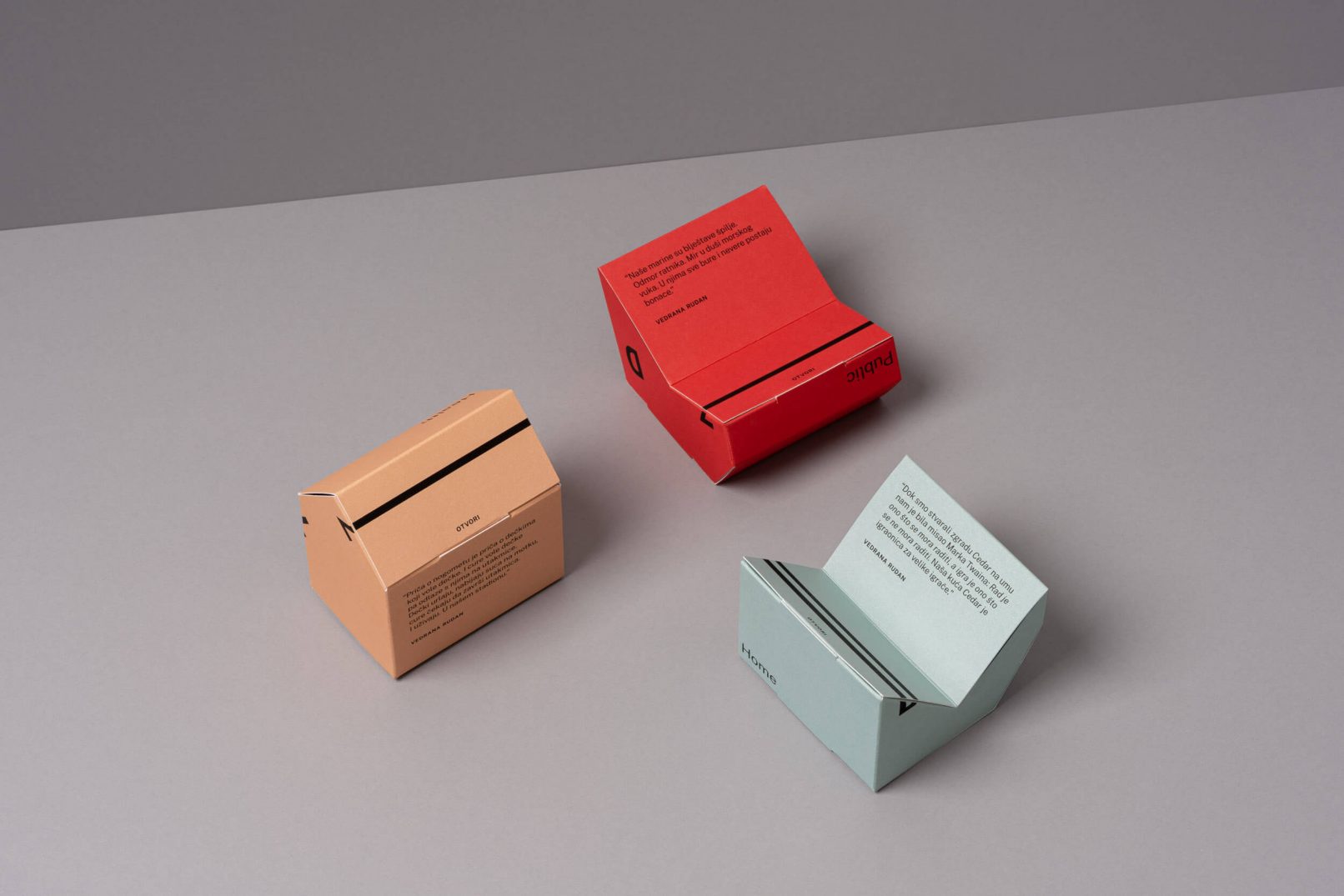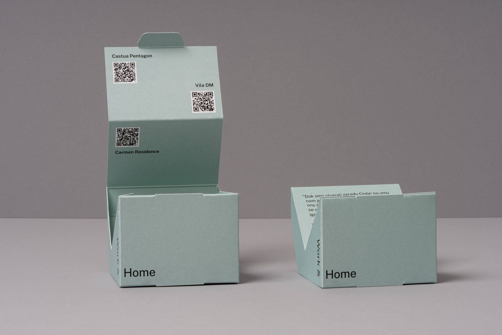 Deplijan je zamišljen kao arhitektonska zagonetka – tri zasebna 3D objekta koji u svojoj unutrašnjosti, skeniranjem QR koda, predstavljaju 3 projekta studia, te se na kraju spajaju u jedan cjeloviti objekt koji se fiksira elastičnom trakom.