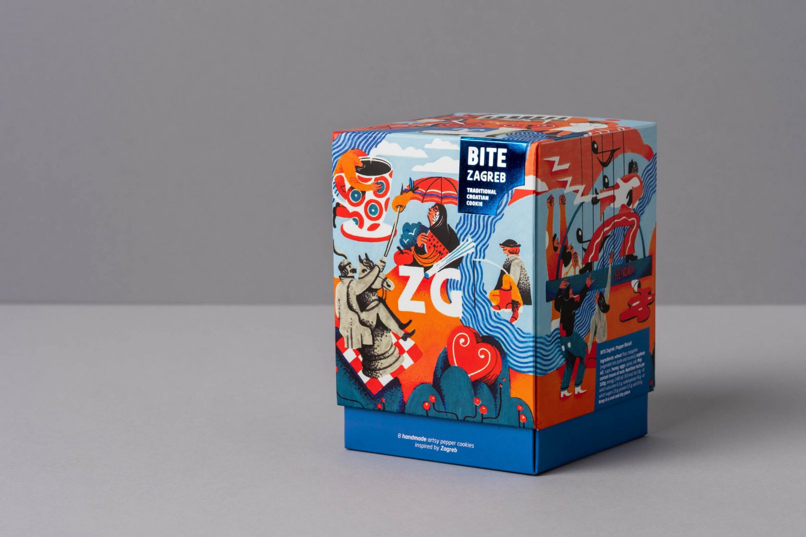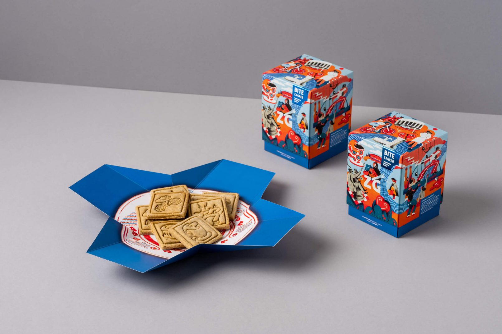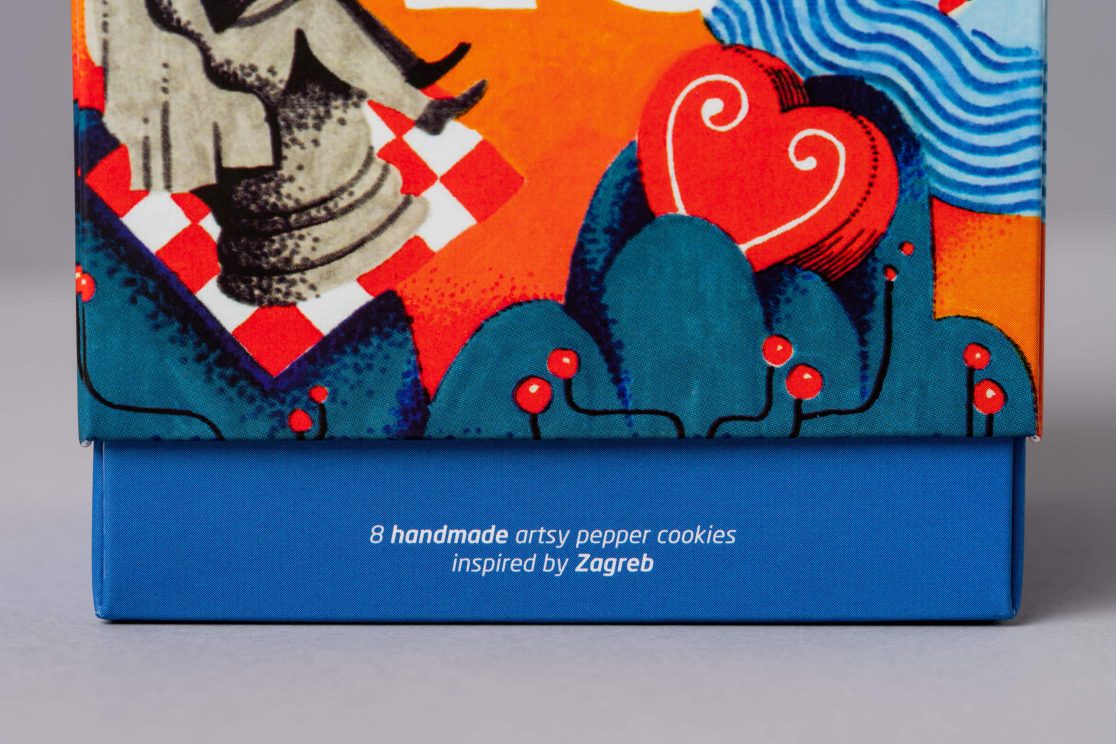 Otvaranjem pakiranja, dno kutije rastvara se u “zdjelicu” s keksima na kojoj je ilustracija zagrebačkog tanjurića. Tradicionalni hrvatski paprenjaci s motivima Zagreba ovom ambalažom potiču na “serviranje” i konzumaciju uz druženje s obitelji i prijateljima.