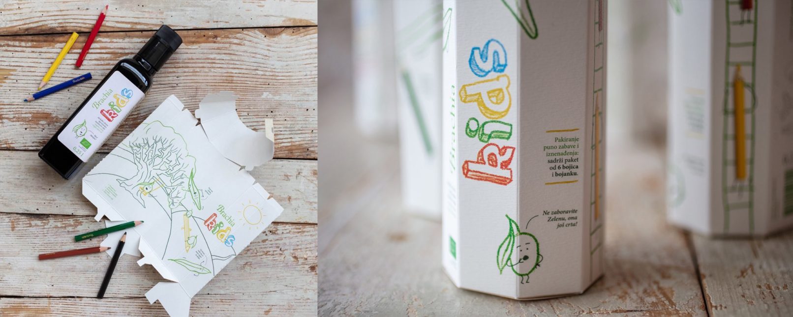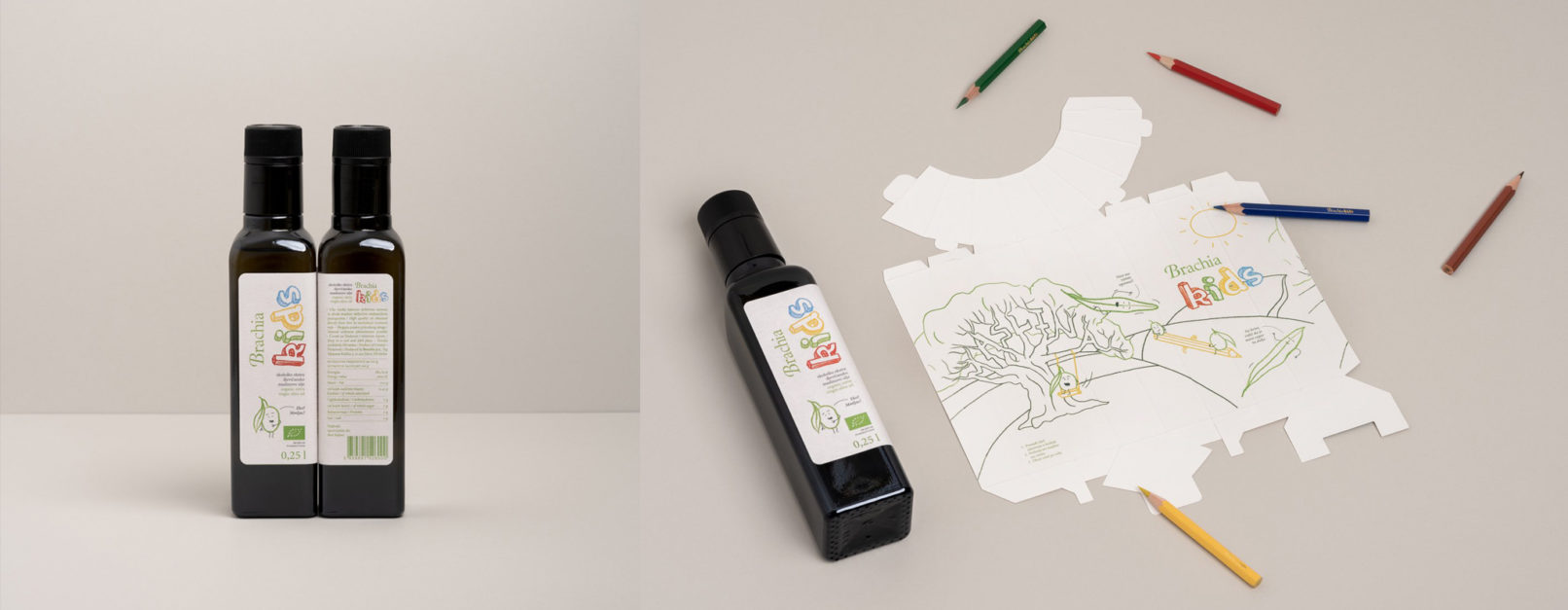 Svjež i zavodljiv okus voćnih sorti maslina iz ekološkog uzgoja s otoka Brača donosi arome idealne da djeca zavole okus maslinovog ulja. Dok dizajn ambalaže ima presudnu ulogu da privuče, zabavi dijete i ispriča mu priču o ovom zdravom proizvodu, koje se u Hrvatskoj još uvijek premalo koristi u prehrani. Cilj Brachia branda je ovim proizvodom postaviti smjer za pozitivne promjene u prehrani djece.
