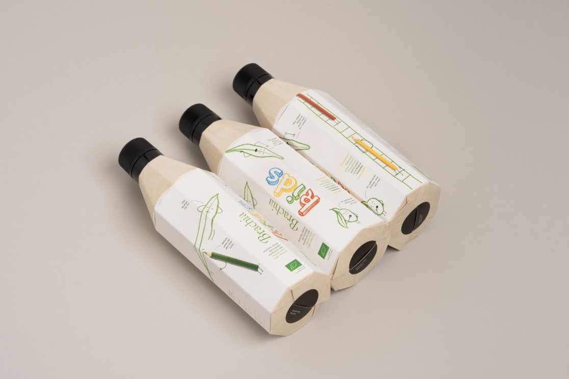 Komunikacija na ambalaži je pristupačna i slobodnija od dosadašnje komunikacije brenda Brachia, što je u skladu s namjenom proizvoda. Ambalažu je dizajnirana na način da djeci proizvod bude pristupačan, zabavan za korištenje, a ujedno i edukativan kako bi se razvijala svijest o važnosti redovite upotrebe maslinovog ulja. Osnova su zabavne ilustracije likova maslina, listova masline i bojica koji međusobno komuniciraju putem pisanih poruka na ambalaži.