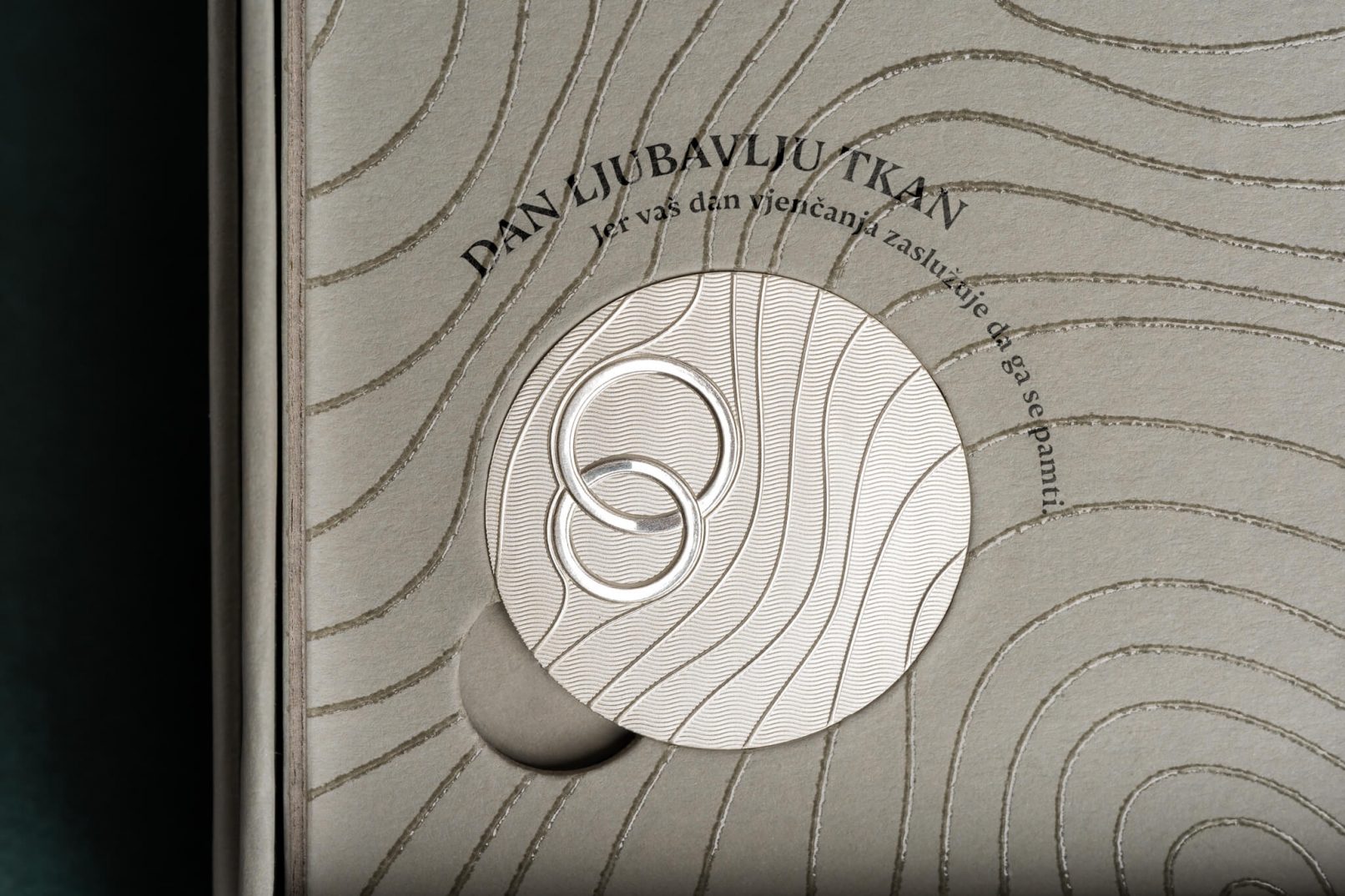 Linije godova prolaze kroz kovanice, a iz prostora između linija izlazi volumen motiva koji predstavlja važan trenutak u životu primatelja poklona. Linije godova iz kovanice nastavljaju se cijelim pakiranjem, ispisane tehnikom termografije koja omogućuje volumen i daje taktilni doživljaj cjelokupnom pakiranju.