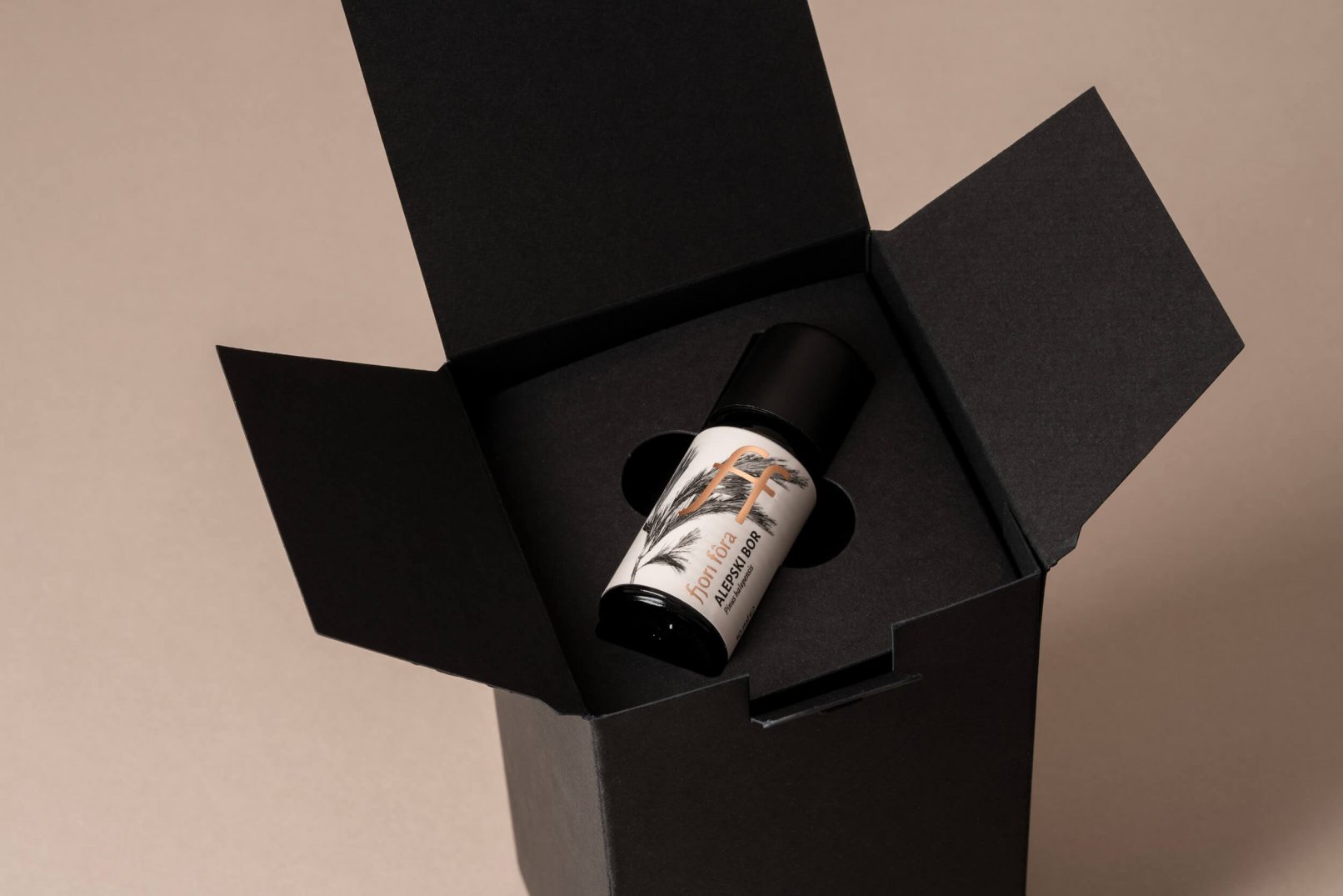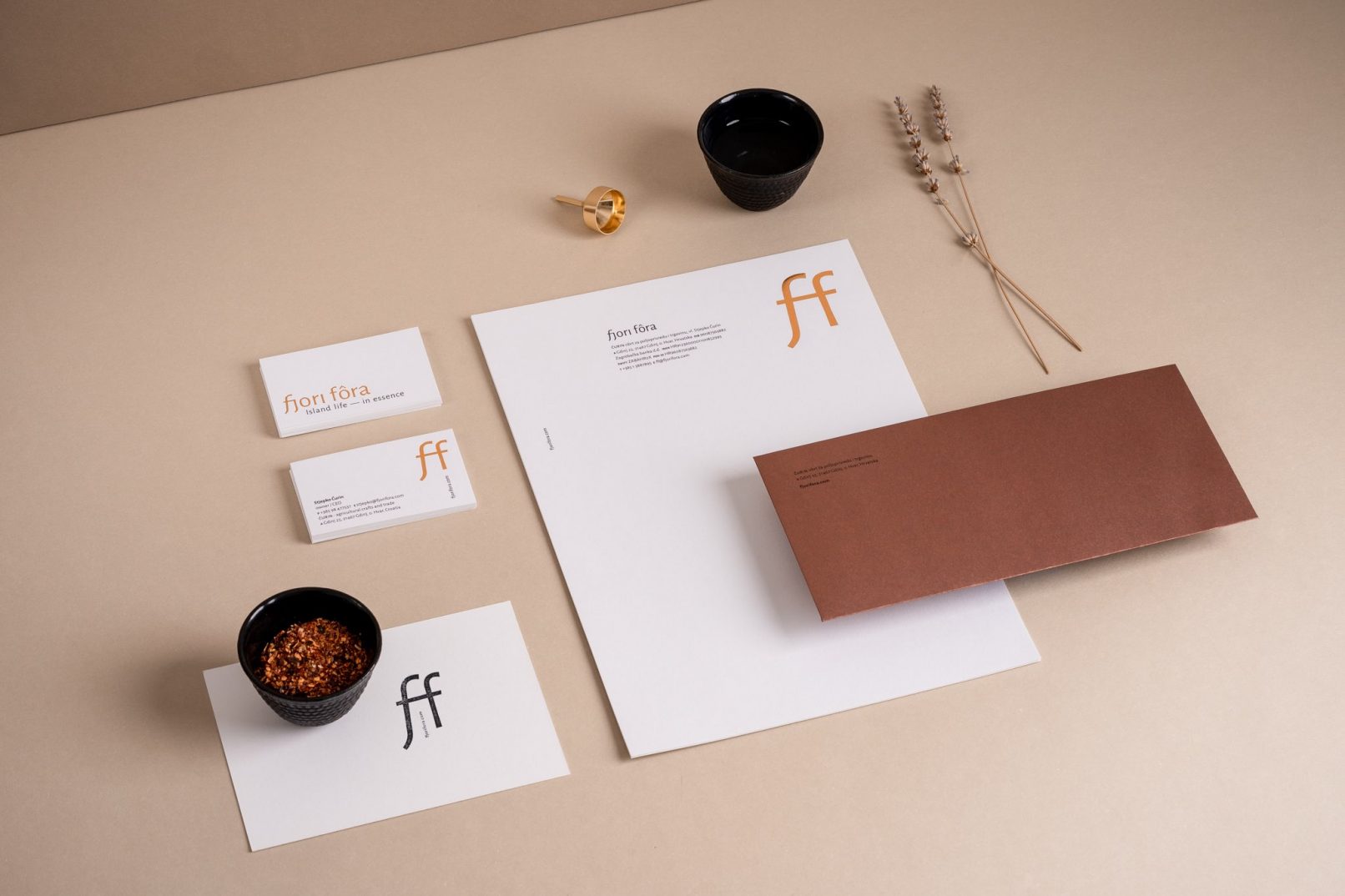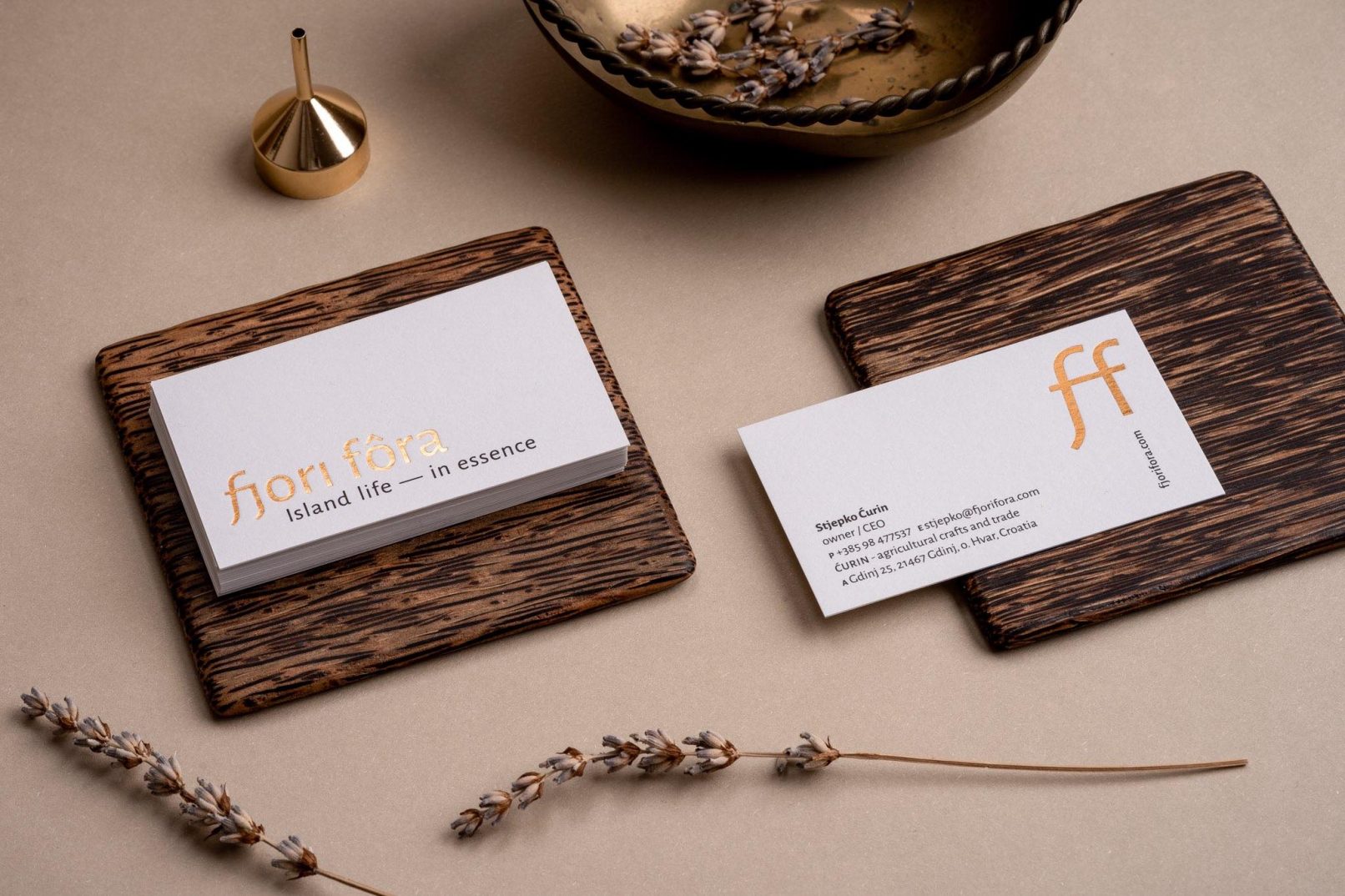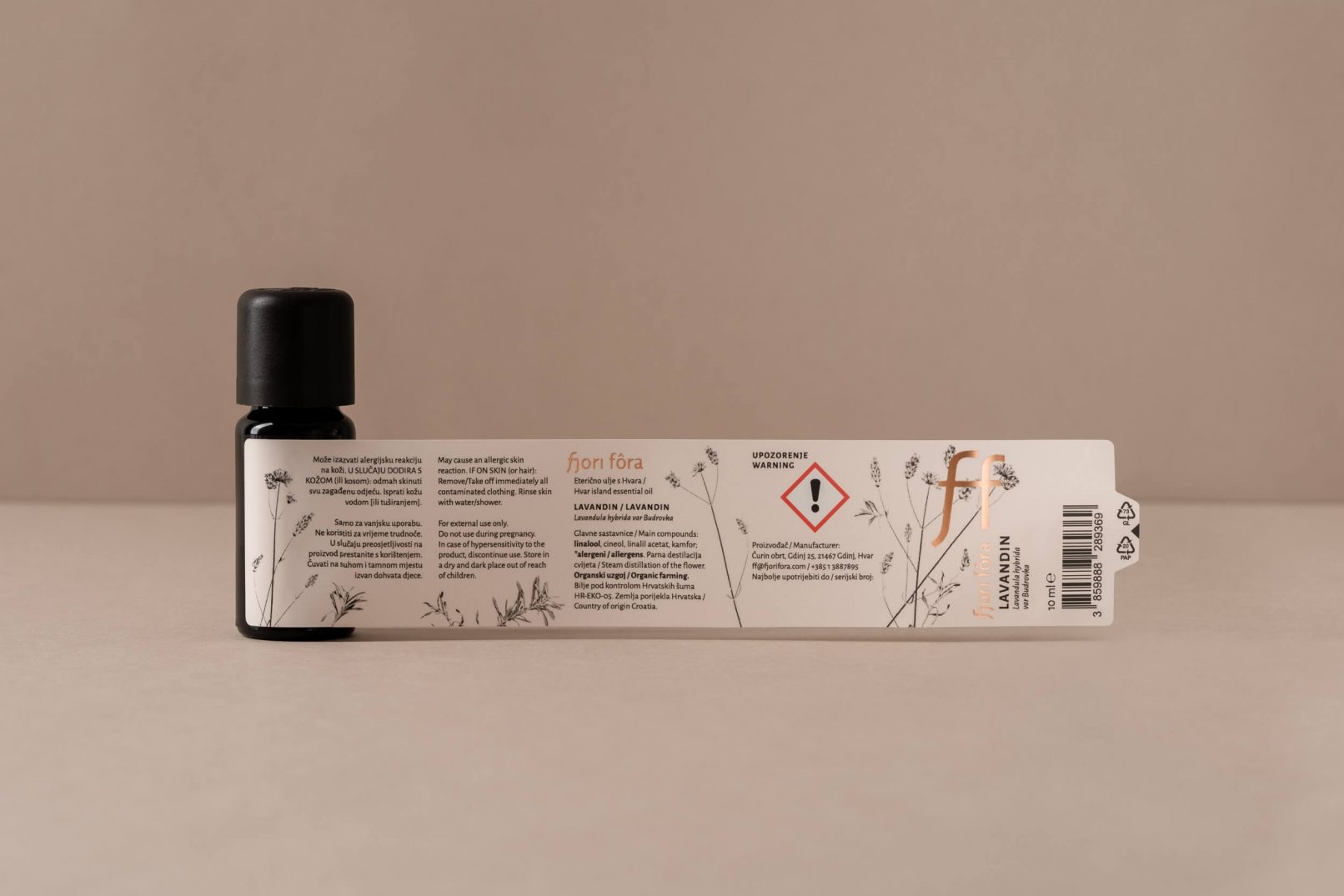 Gotovo monokromatskim pristupom dodatno je naglašena važnost biljke i njene izvornosti, a korištenje tehnike foliotiska u tamnoj zlatno-bakrenoj boji komunicira se visoka vrijednost proizvoda. Zavisno od linije proizvoda u Fjori Fôra grupi, osnovna boja može se promatrati kao “tekuće zlato” kod eteričnih ulja ili pak kao velika vrijednost zemlje u otočkom kamenu iz koje niču sve dragocjene hvarske biljke.