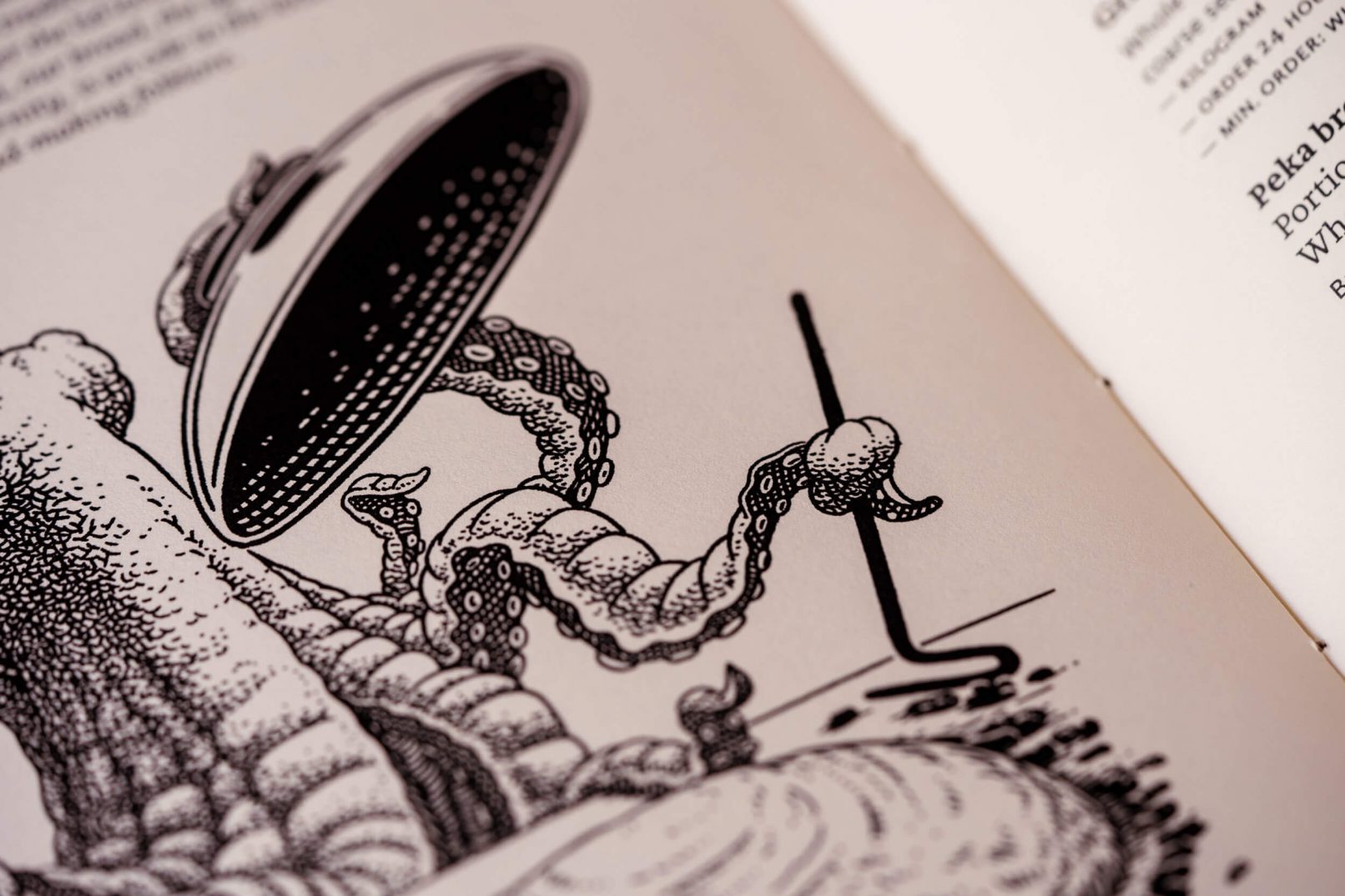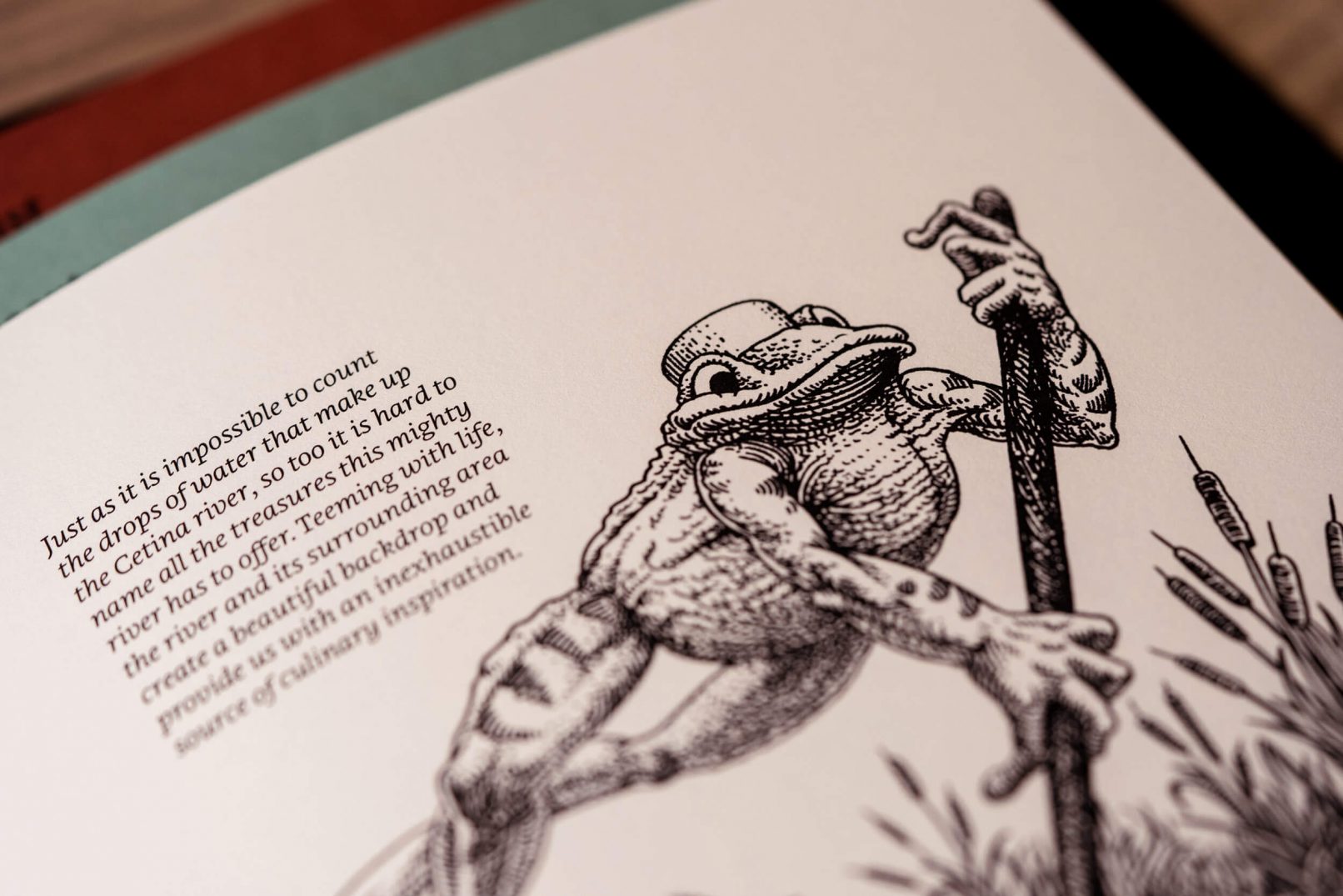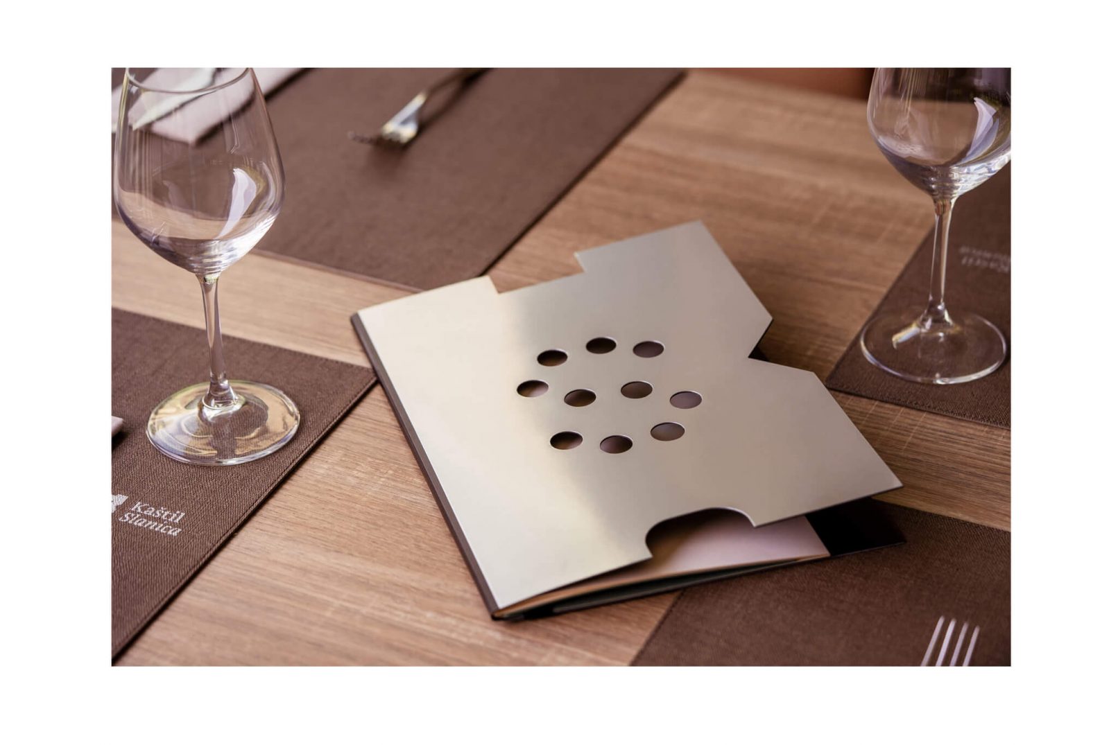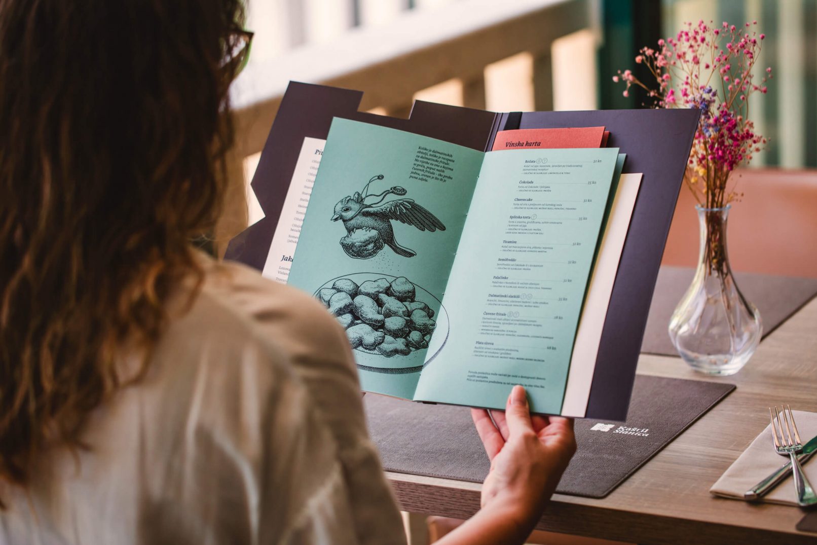 Meni i promotivni materijali nadopunjeni su ilustracijama i tekstom koji zajedno prenose priče lokaliteta i gastronomske ponude. Projekt uključuje i dizajn opreme restorana, fotografije jela i postava stola, dizajn suvenir ponude, unutarnju i vanjska signalizacija te brendiranje specifičnih elemenata prostora.