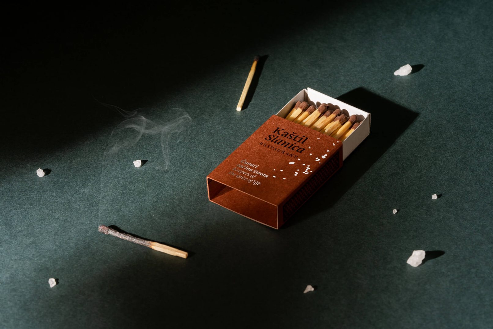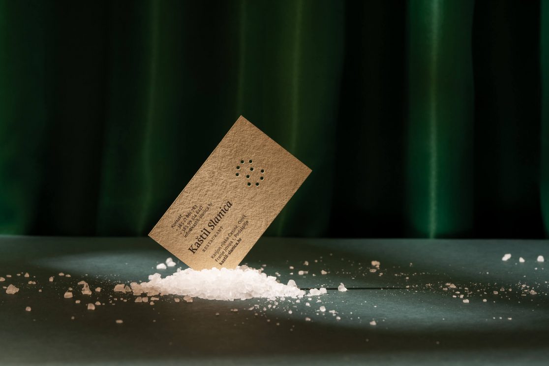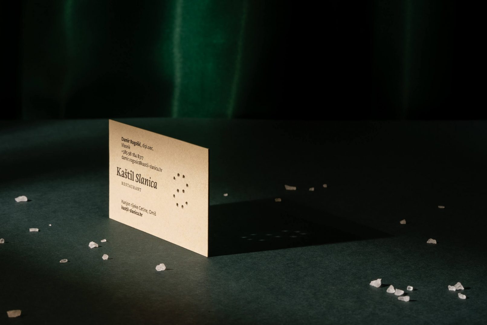 Identitet je u osnovi jednostavan i elegantan, a elementi i interijer upotrebom boja i materijala komuniciraju emociju, tradiciju, lokalnu gastronomiju i prirodne ljepote. Identitet postavlja osnovu za razvedenu komunikaciju, pomalo dramatično, ali emotivno i primamljivo gradi priču i omogućuje nadogradnju usluga Kaštil Slanice.