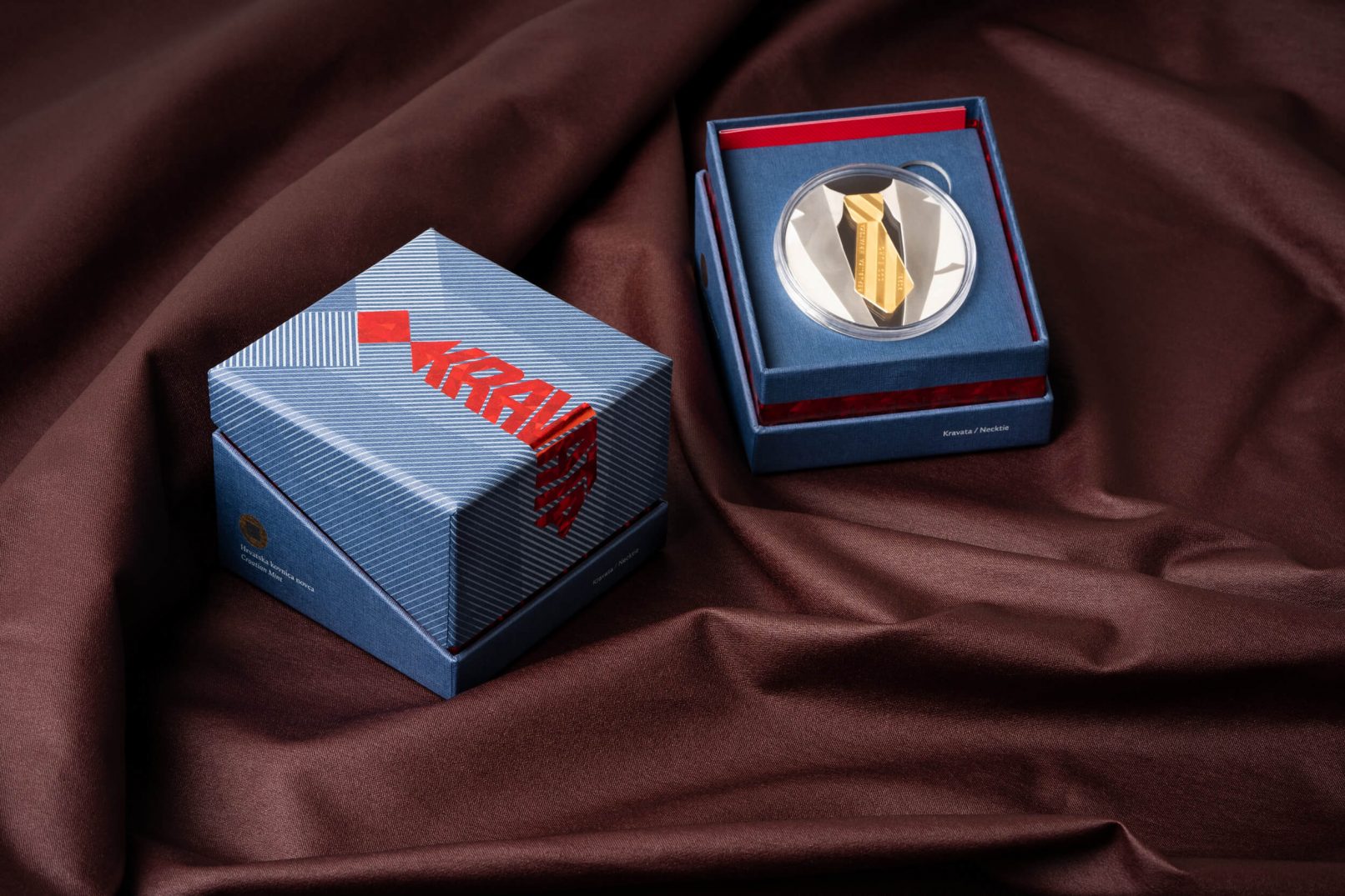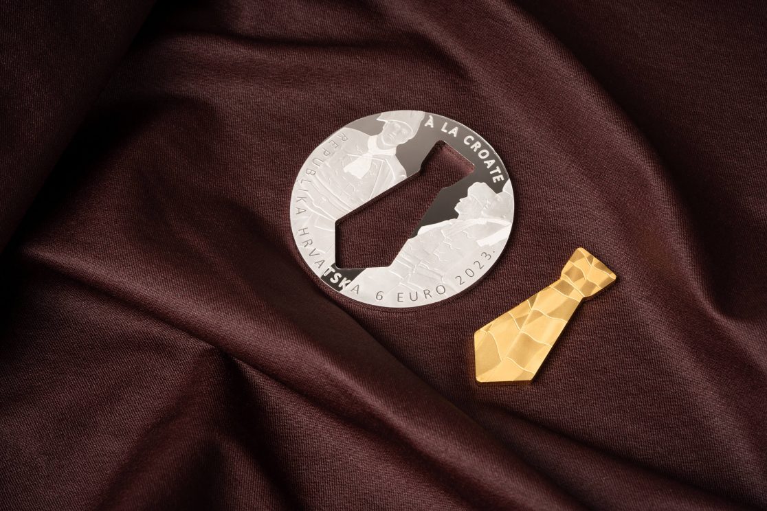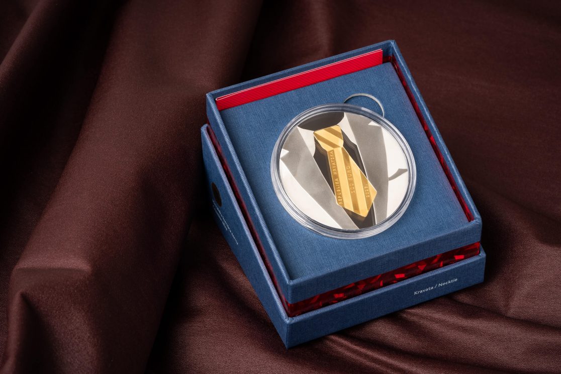 Prvu hrvatsku numizmatičku eurokovanicu, zlatnu i srebrnu kovanica “Konturna kravata”, izdala je Hrvatska narodna banka u suradnji s Hrvatskom kovnicom novca. Izdanje se sastoji se od dvije kovanice, izrađene od različitih plemenitih metala. Zlatna kovanica prati konture kravate i umetnuta je u srebrnu kovanicu. Autor kovanice, univ. bacc. art. Nikola Vudrag, na naličju kovanice prikazao je hrvatske vojnike koji su se pod francuskom zastavom borili u Tridesetogodišnjem ratu u 17. stoljeću. Oko vrata su nosili rubac, danas poznatiji kao kravata.