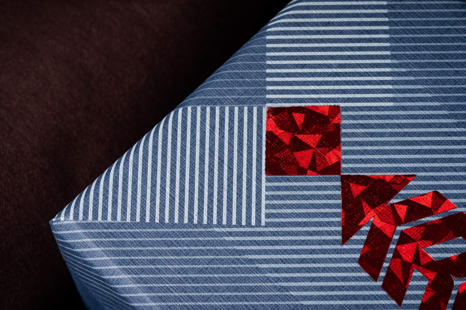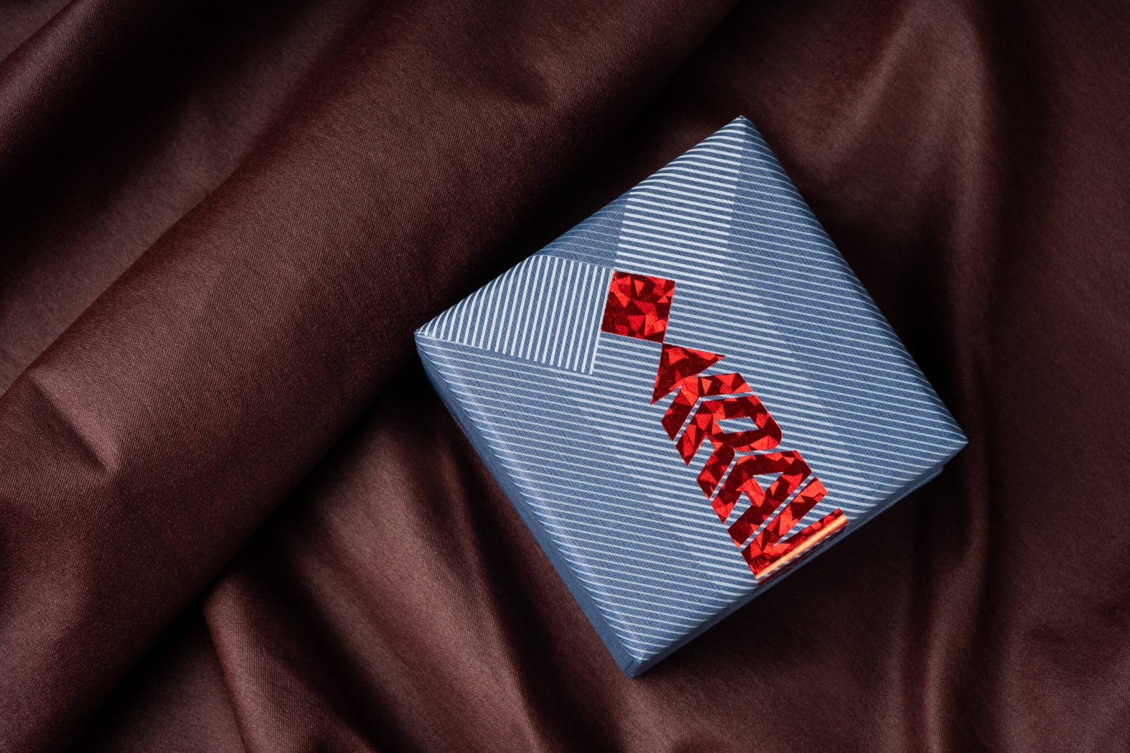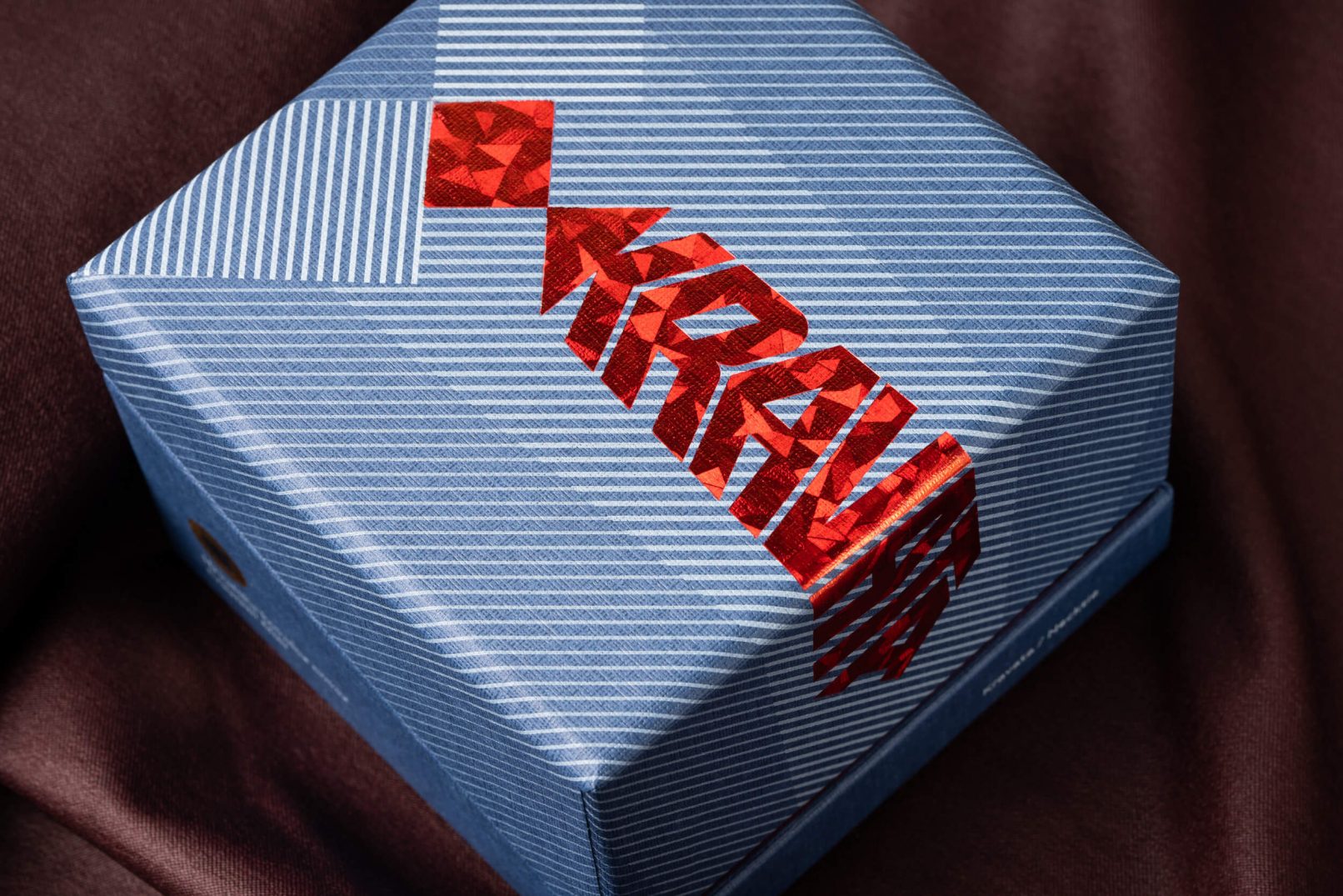 Ambalaža proizvoda zamišljena je kao hommage ovom ikoničnom modnom i kulturnom predmetu. Tvrdo kaširana kutija presvučena je tamno plavim odijelom i na sebi nosi crvenu kravatu sastavljena od slovnih znakova riječi “kravata”. Odabrani papir ima teksturu tkanine, a sama kravata izvedena je u crvenoj hologramskoj foliji s uzorkom.