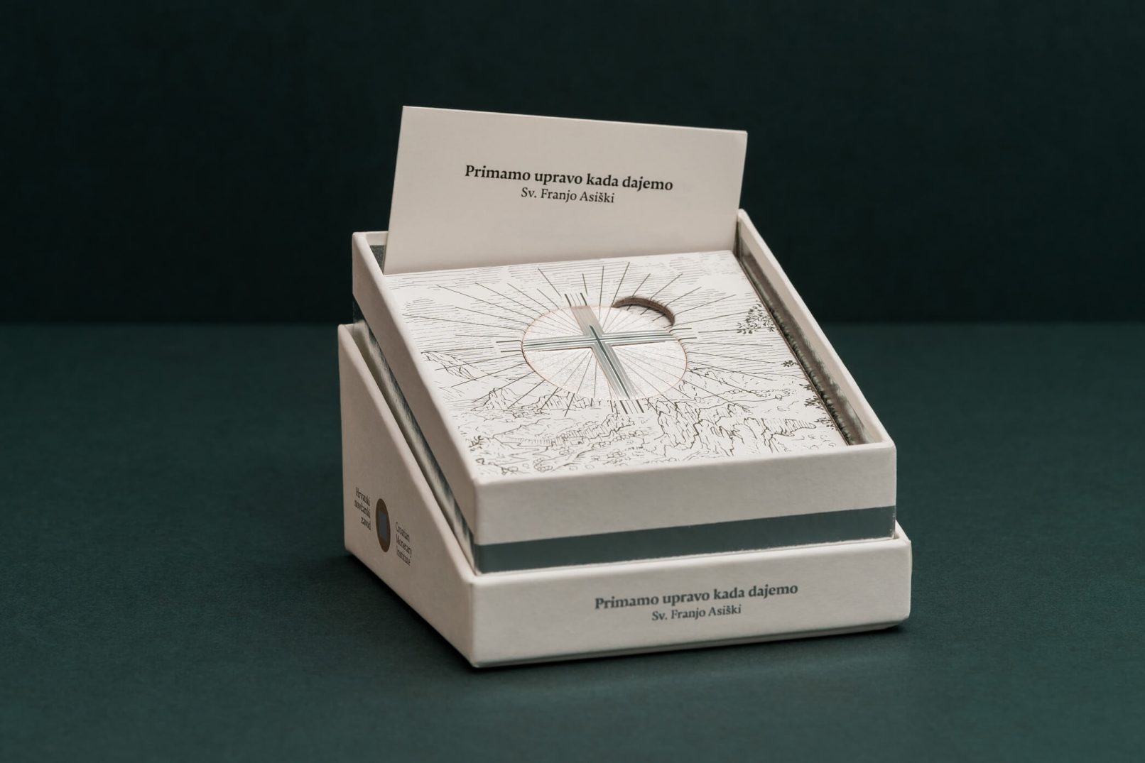 “Križ” je prigodna medalja, dar za različite kršćanske prigode (krštenje, prva pričest itd.). Rješenje “medalja s križem“ suvremene je forme, koja je integrirana s ilustracijom tradicionalnog stila – križ u pejzažu prožet duhovnim iskustvom, zajedno s porukom svetog Franje Asiškog “Primamo upravo kada dajemo.”