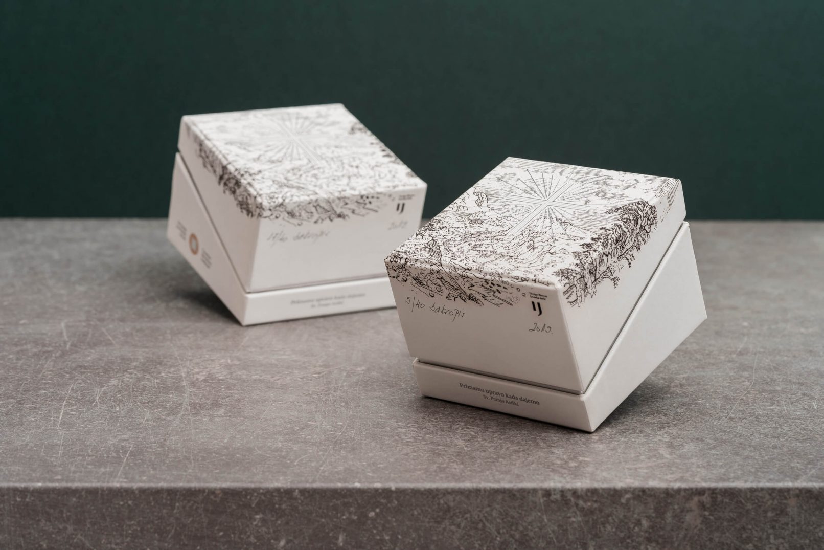 Proces razvoja dizajna ambalaže daje dodanu vrijednost proizvodu. Originalno izrađena ilustracija prenesena je na poklopac kutije, a u limitiranom izdanju izvedena kao potpisano autorsko umjetničko djelo.