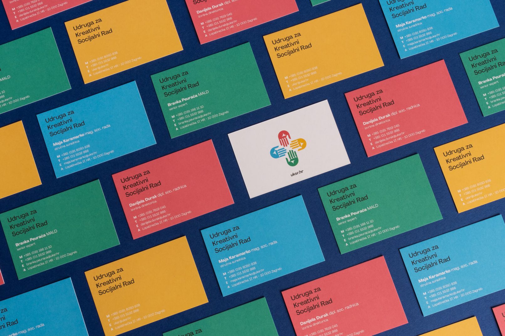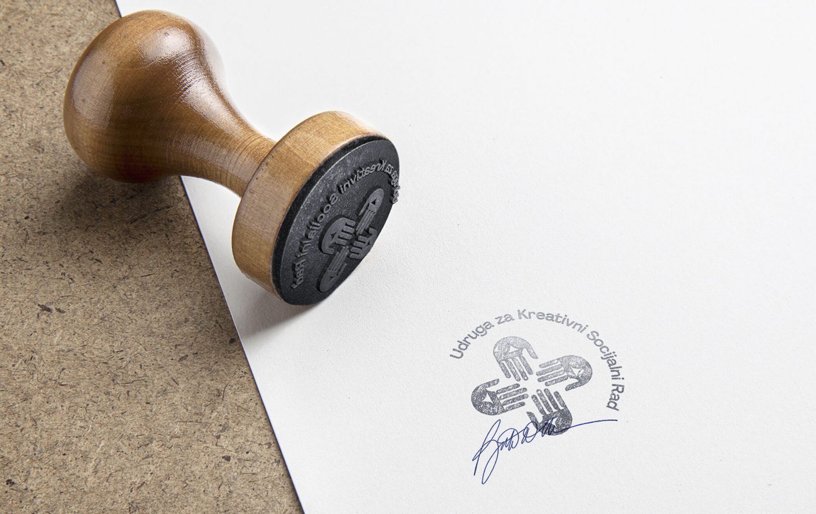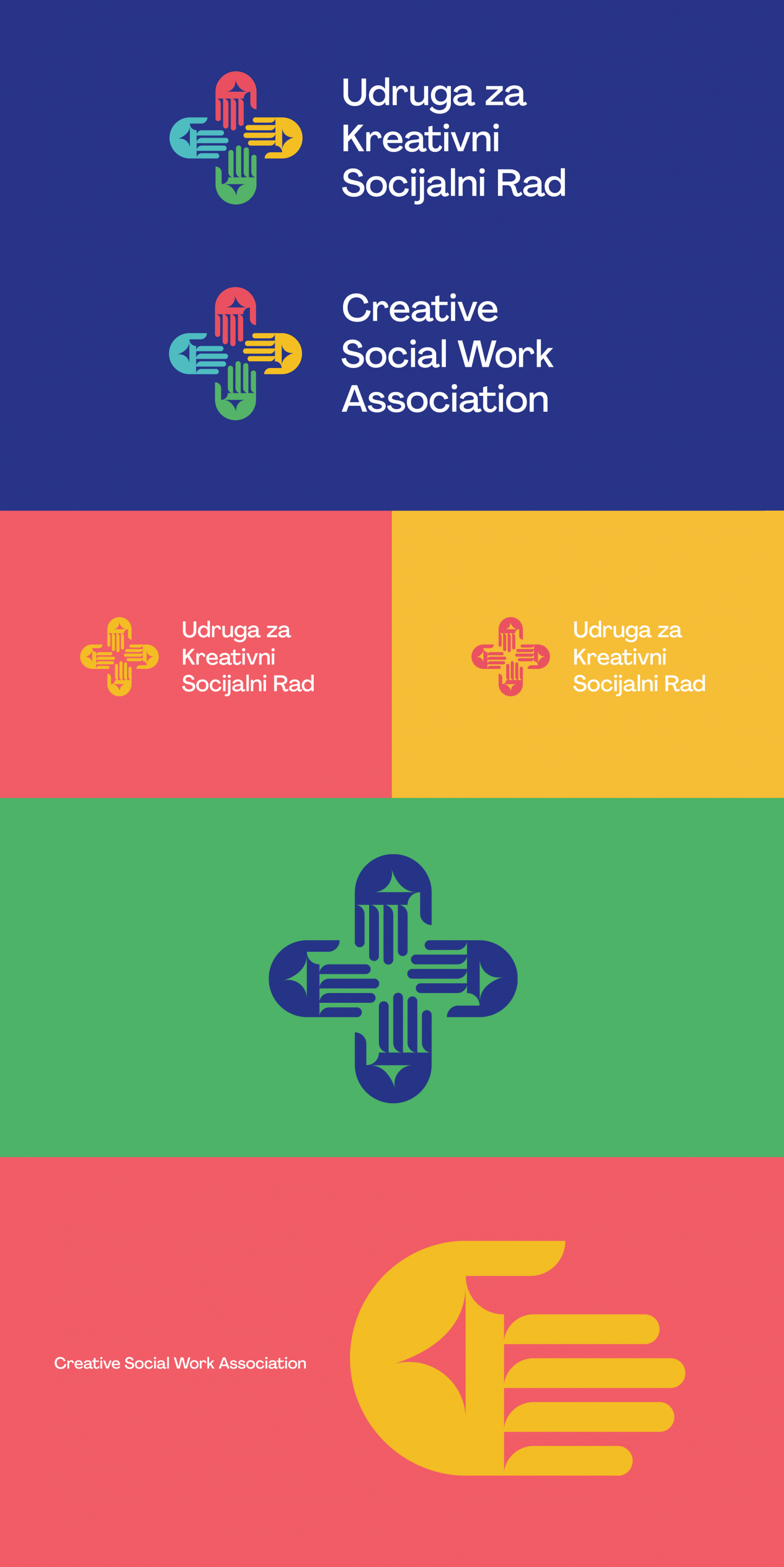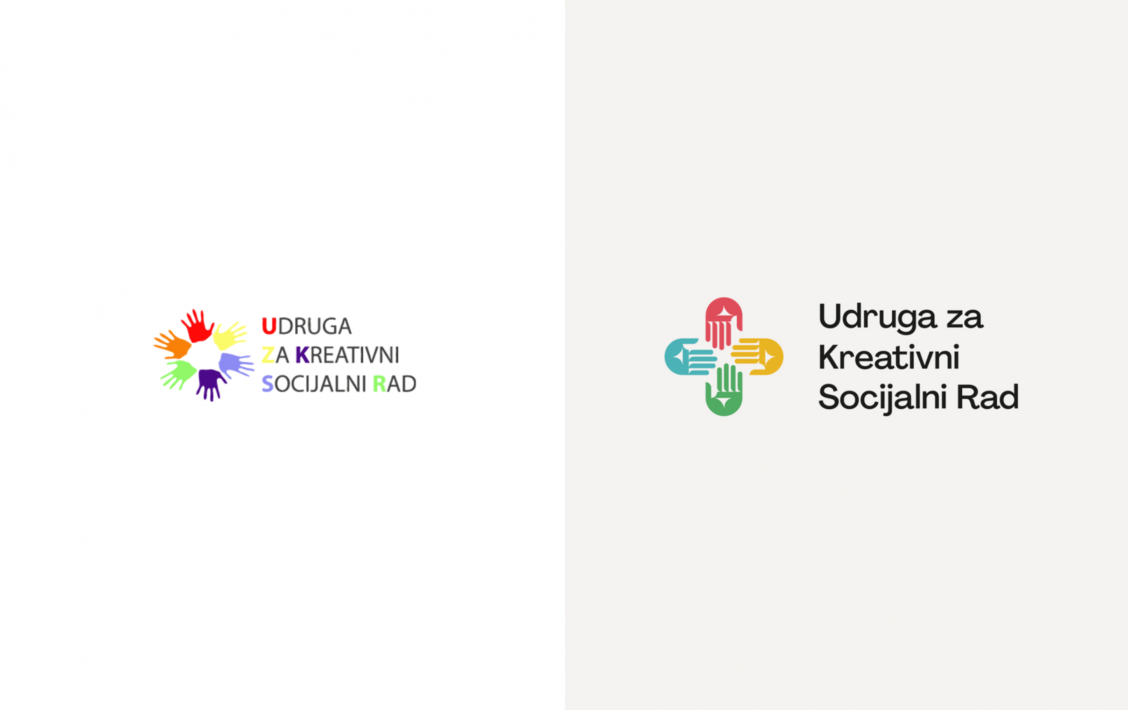 Redizajnom vizualnog identiteta Udruge za kreativni socijalni rad zadržao se osnovni motiv – ruke, ali tako da su orijentirane jedna prema drugoj i zajednički tvore formu križa, komunicirajući podršku i pomoć u kriznim situacijama, što je i osnova djelovanja Udruge.